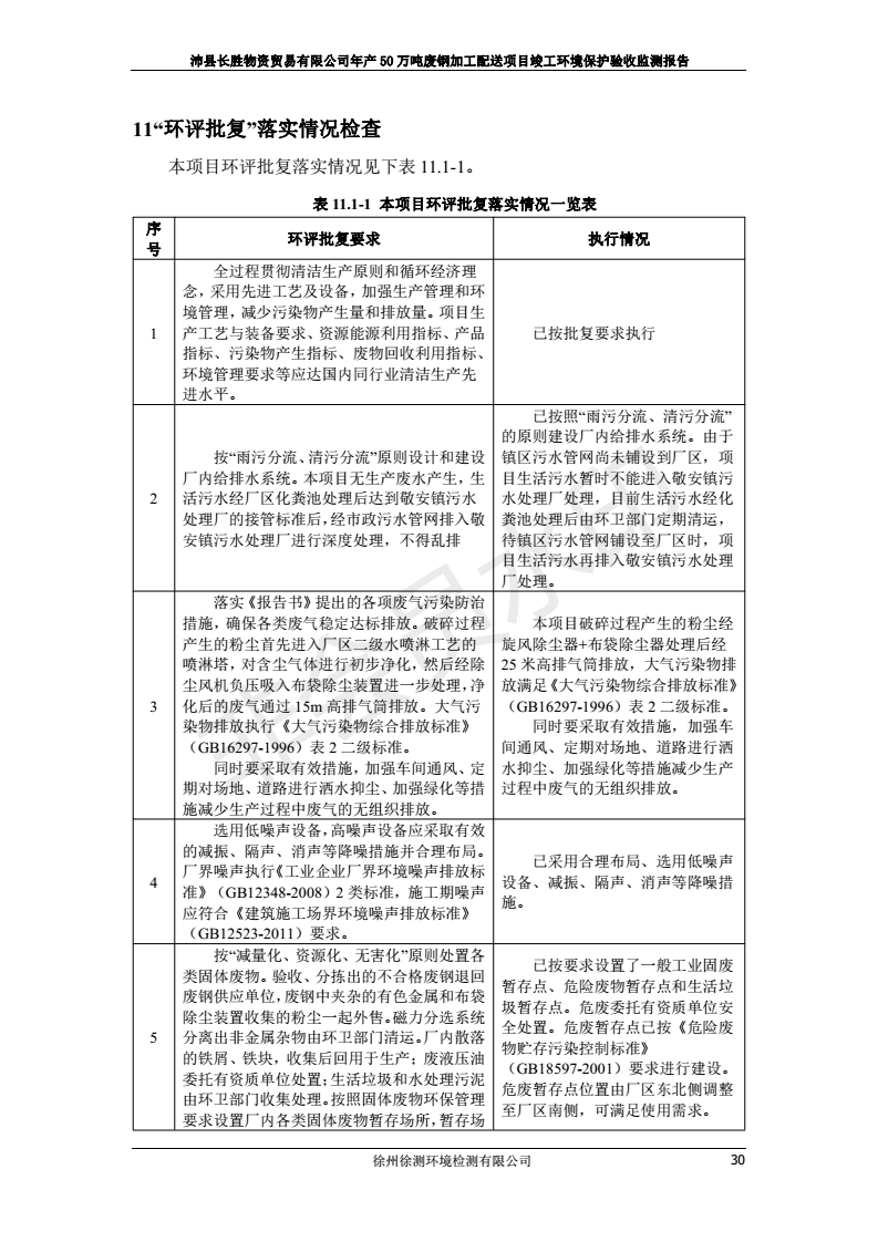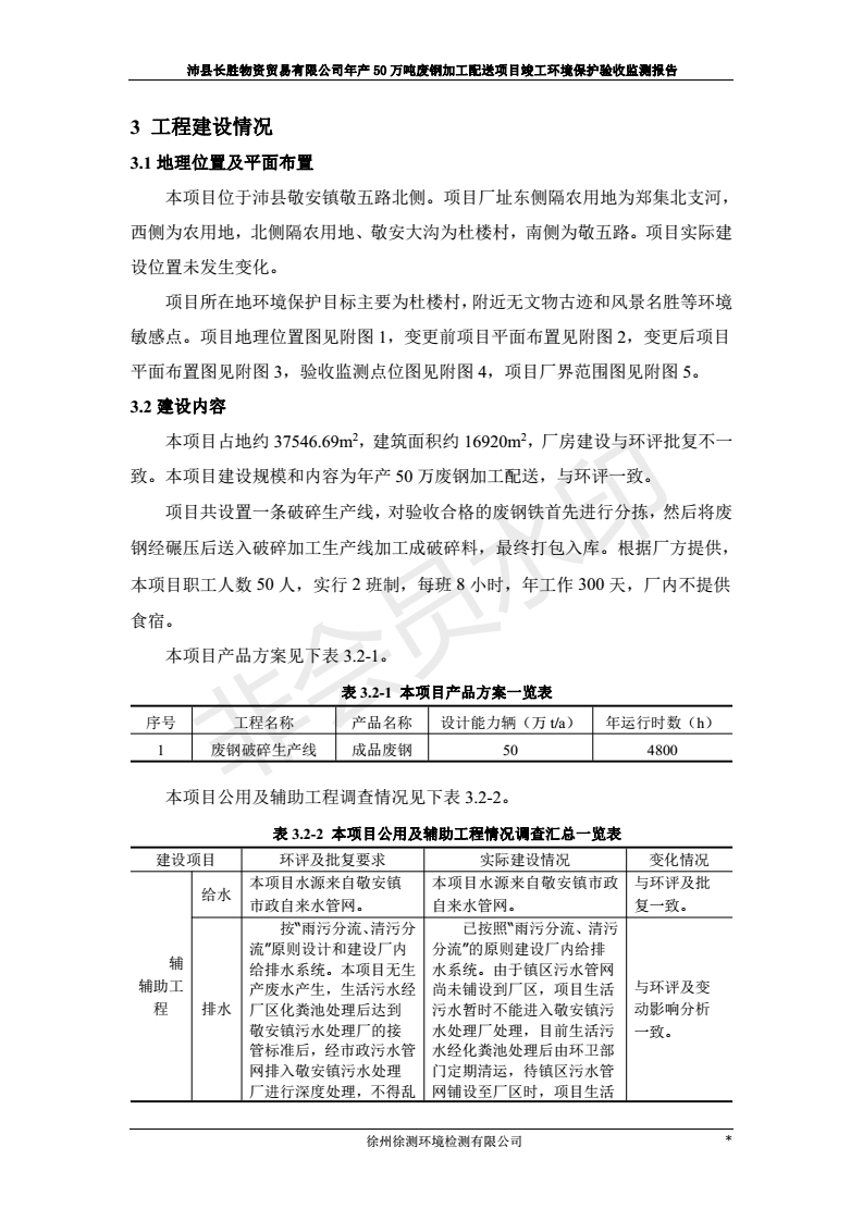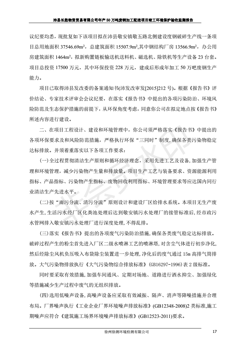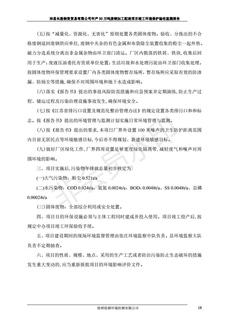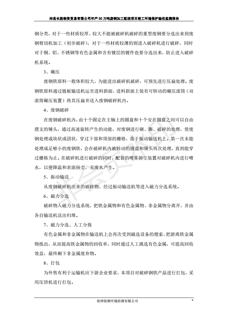 公示:廢鋼加工配送項目竣工環境保護驗收監測報告