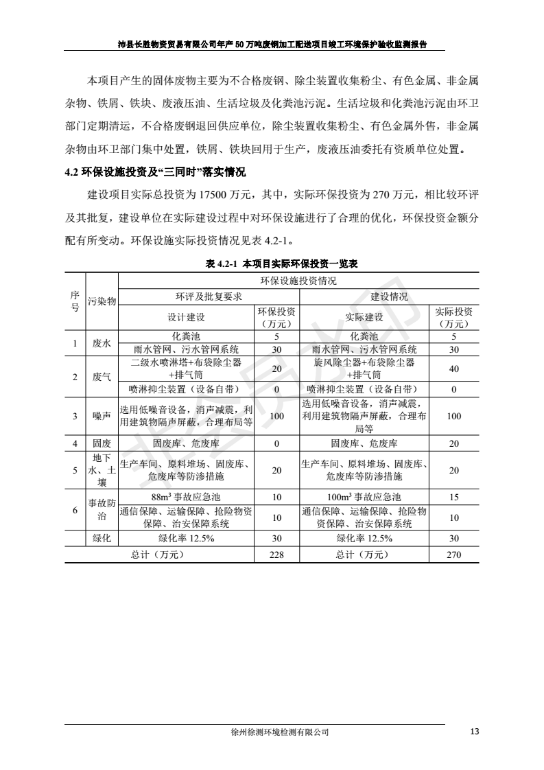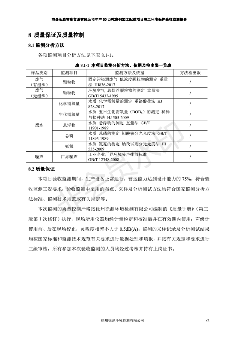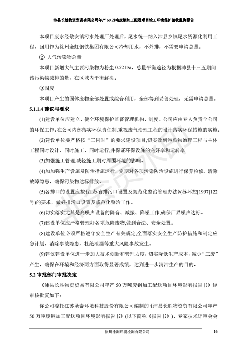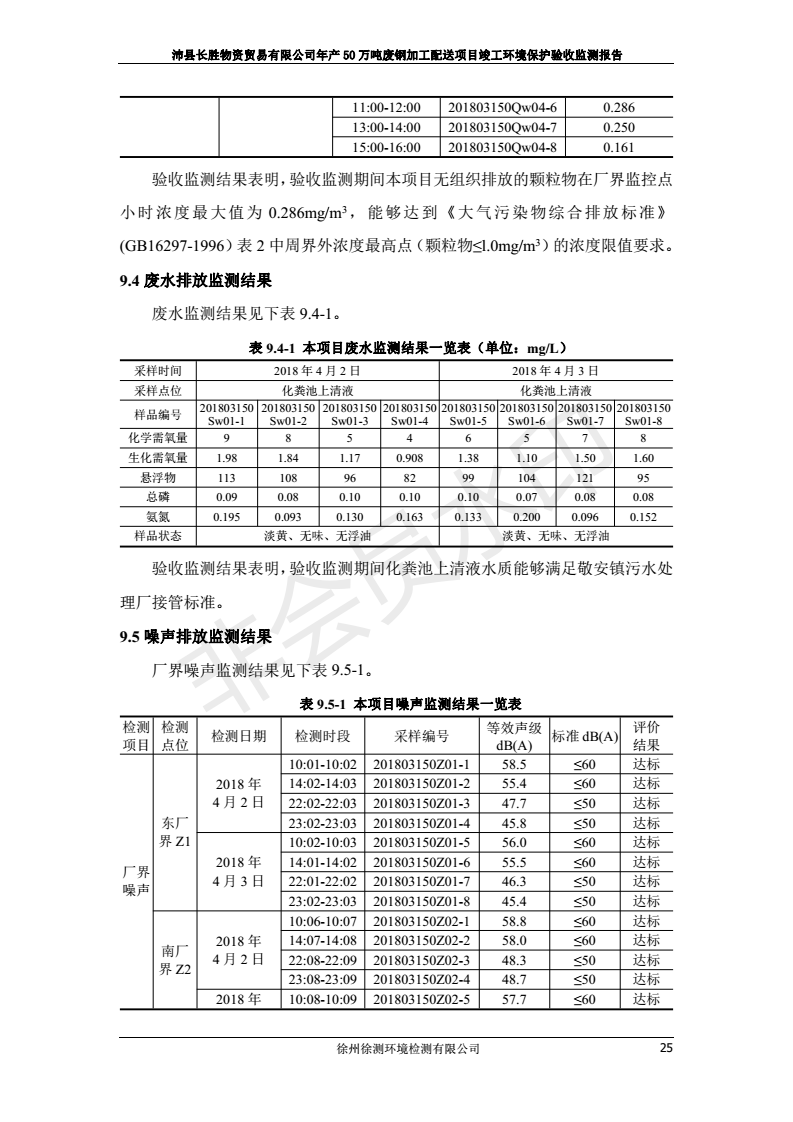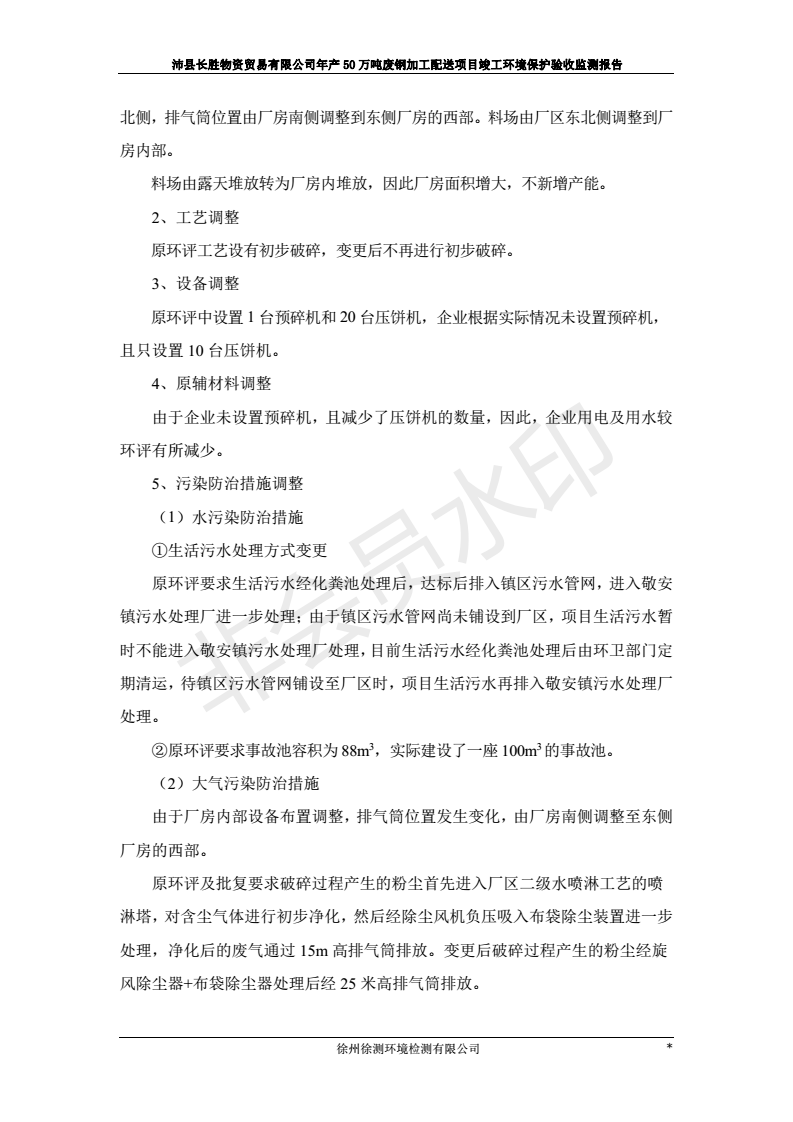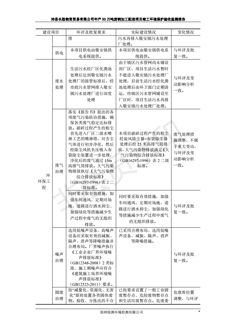 公示:廢鋼加工配送項目竣工環境保護驗收監測報告