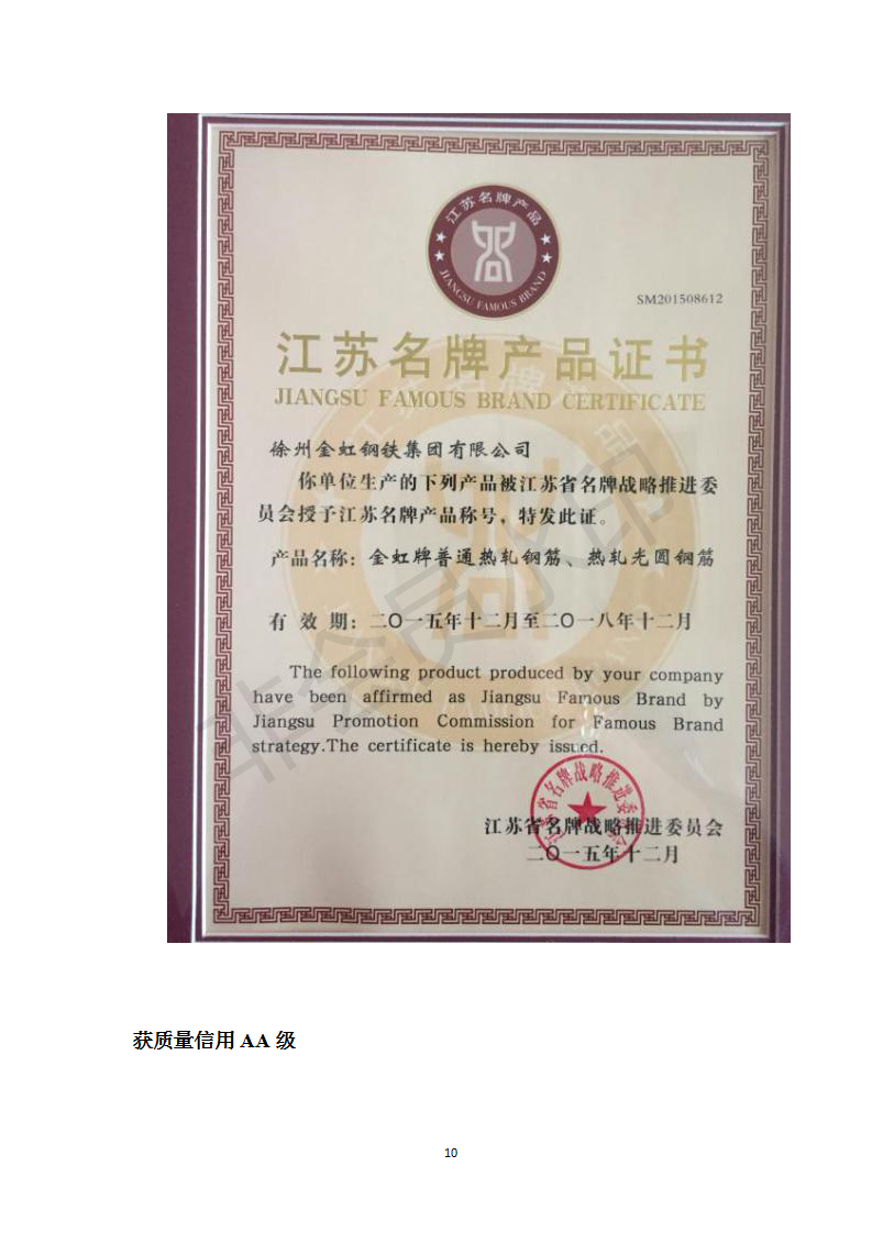 公示:徐州金虹鋼鐵集團有限公司質(zhì)量信用報告